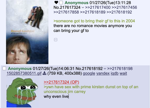 kali_fornication@lemmy.world · 5 days agoAnon likes romance movieslemmy.worldimagemessage-square7linkfedilinkarrow-up18arrow-down10