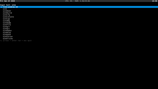 arrow-up11arrow-down1imagettymenu. A dependency-free dmenu clone for the TTY.plus-squarelemmy.worldGustavoM@lemmy.worldEnglish · 3 days agomessage-square1linkfedilink