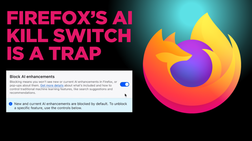 arrow-up10arrow-down1external-linkFirefox’s AI Kill Switch is a Trap: How Mozilla Made AI Your Problemplus-squarewww.quippd.comyoasif@lemmy.worldEnglish · 9 days agomessage-square0linkfedilink