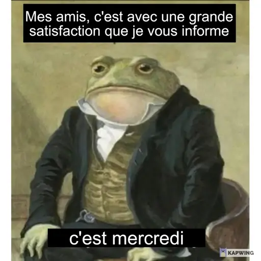 zaphod@sopuli.xyzFrançais · 2 months agoMercredisopuli.xyzimagemessage-square0linkfedilinkarrow-up11arrow-down10