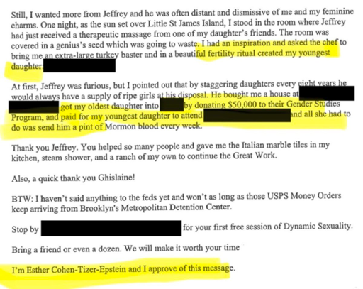 arrow-up11arrow-down1imageWoman claims to have impregnated herself with Epstein's semen and sent him a pint of mormon blood from her youngest daughter every week in exchange for her school fundinglemmy.mlgeneva_convenience@lemmy.ml · edit-21 month agomessage-square0linkfedilink