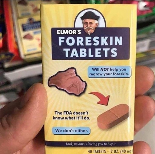 minus-squareSanctimoniousApe@lemmings.worldlinkfedilinkarrow-up11·12 hours ago The FDA doesn’t know what it’ll do. We don’t either. So then you can’t really say it… Will NOT help you regrow your foreskin …now, can you? I’ll also take 20.