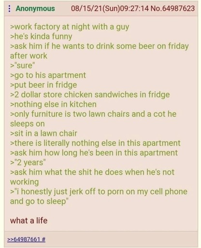 arrow-up1581arrow-down1imageAnon hangs out with a coworkersh.itjust.works🍹Early to RISA 🧉@sh.itjust.worksM to Greentext@sh.itjust.works · 6 days agomessage-square60linkfedilink
