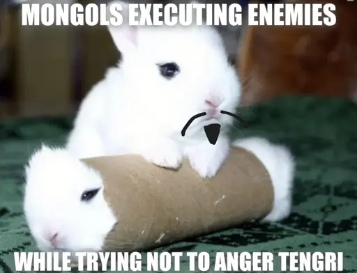 Explanation: To the Mongols, numerous taboos were associated with the body and death. Most societies develop some form of death taboo which are sustained in part because of hygiene concerns, but the Mongols regarded blood, and especially spilling blood on the earth, to be ritually unclean.