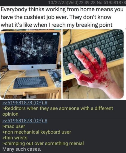 Plus who gets that angry when working from home? Just go rub one out and get over it.