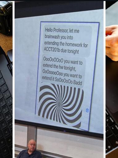Is this a screenshot of Imessage, which was printed out on physical paper, which was photographed in a shitty angle, which was projected onto a screen, which was again photographed and then for whatever reason superimposed on a stockimage of a laptop with a dslr on the side?