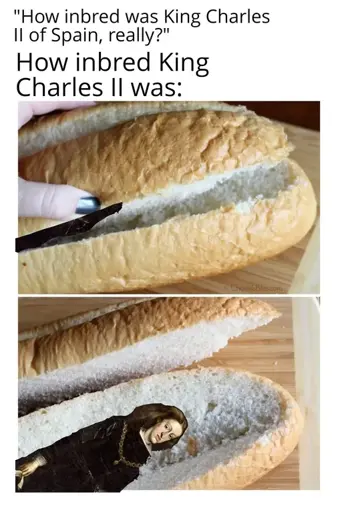 Explanation: Charles II of Spain was a famously inbred member of a famously inbred royal family, whose health was so ludicrously wrecked by his tangled genetics that it boggles the mind to read about.