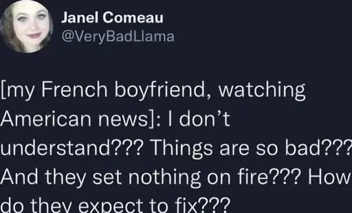 When you look at the damage French protests cause vs the violence they incite in cops, it’s relatively safe compared to the violence us cops perpetrate in retribution to completely peaceful protests in the us, or even just violence top bystanders in the US. Add in that French protests actually accomplish something and the risk benefit calculations are so totally different.