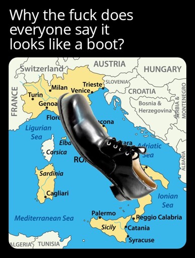If I had a nickel for each peninsula that’s shaped like a boot I’d have two nickels, which isn’t a lot but it’s weird that it happened twice.