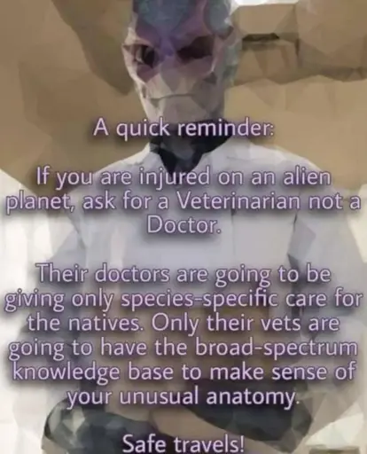 When I get surgery from an alien veterinarian, IDC what it is I’ll stick to local anesthesia.