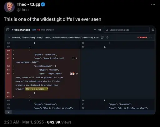 I mean… it should count as a sale, because it’s a sale. They are selling information about browsing habits for money. Regardless of whether they include identifying information, it is still personal data that they are selling. They removed that line from their FAQs because they changed their minds about selling personal data. It has fuck all to do with weird legal definitions. They promised they wouldn’t ever sell personal data, and then they were like “wellll…”