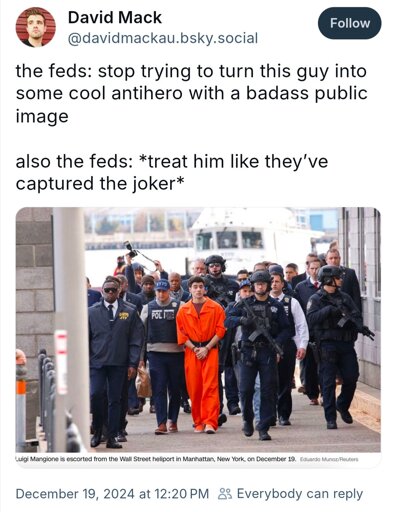 minus-squareAngryCommieKender@lemmy.worldlinkfedilinkarrow-up1·1 year agoMaybe the cops are playing both sides? I’m definitely giving them too much credit there, but maybe?
