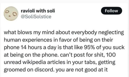 minus-squarenull@piefed.nullspace.lollinkfedilinkEnglisharrow-up6·15 days agoYeah, my best luck has been with signing up for some kind of weekly thing with a group of strangers. Kinda doesn’t even matter what it is, but the more closely it aligns with your interests and values, the better time you’ll have.