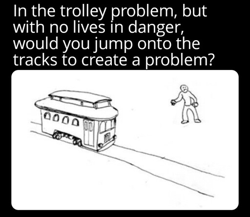minus-squarew3ird_sloth@lemmy.worldlinkfedilinkarrow-up2·6 days agoHijack the trolley. If it goes under 5mph, it blows up.