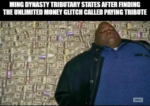 … some of the brighter vassal states caught on and started sending constant tribute, resulting in the secretaries of the Emperor demanding they only send annual tribute instead of “Whenever we feel like”, as was the previous standard.