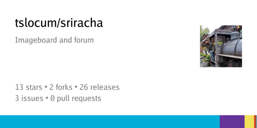 trevor@lemmy.ml to Open Source@lemmy.mlEnglish · 22 days agoSriracha imageboard and forum (written in Go, supports Docker)codeberg.orgexternal-linkmessage-square0linkfedilinkarrow-up11arrow-down10cross-posted to: foss_de@feddit.org