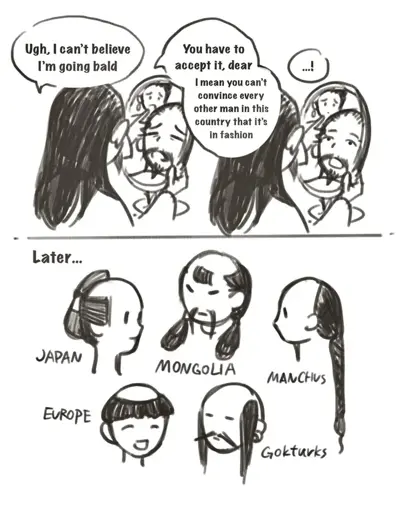 Also, hair on the top of your head means you have something to hide from the sky/sun god. Only the bald are pious and honest devotees, everyone else are duplicitous non-believers.
