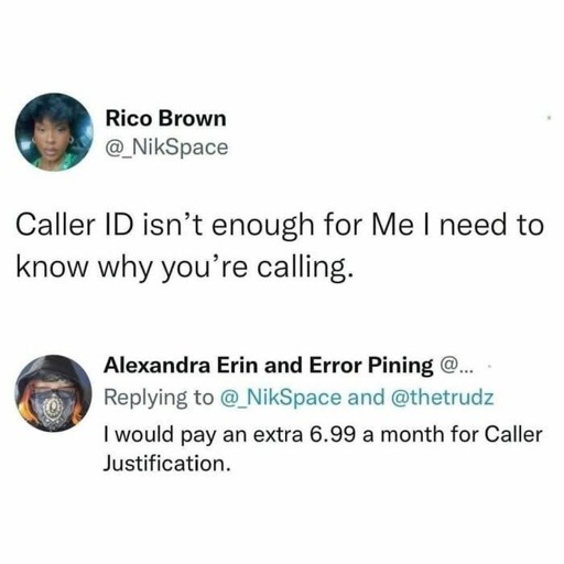 minus-squareCantaloupe@lemmy.fedioasis.cclinkfedilinkarrow-up6arrow-down1·7 days agoI need you to not fucking call me period. I hate random phone calls.