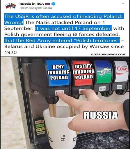It is bad when someone else invades Poland but good when russians do this. - Russian government.
