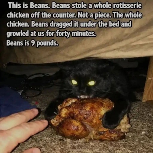 I’m on team Beans. Humans can go get another chicken and learn how to properly guard your provisions this time.