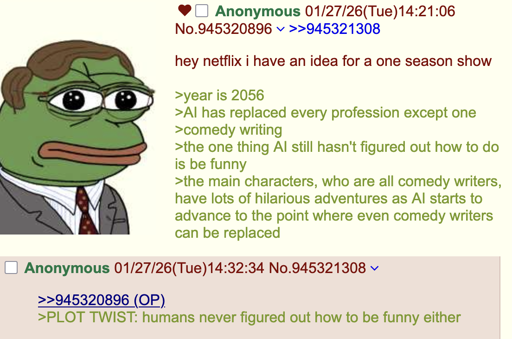 arrow-up122arrow-down1imageAnon makes a pitchlemmy.worldkali_fornication@lemmy.world to Greentext@sh.itjust.works · 13 days agomessage-square2linkfedilink