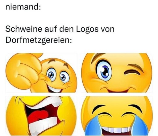 Auch diese riesigen grinsenden Schweineaufsteller, bei dem das Schwein auf die Tafel zeigt, auf der dann sowas wie HEUTE WURST 2,99 DM steht… Fand das schon als Kind immer bisschen krank, obwohl ich damals noch selbst gerne Wurst gegessen habe.