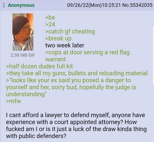 Can afford a bunch of guns and ammo, but can’t afford a lawyer to defend yourself in court?