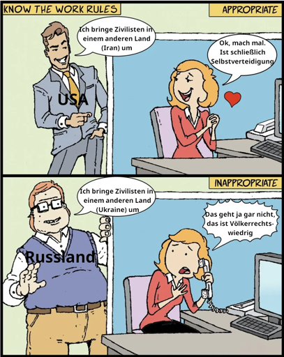 Genauso war es doch auch bei der Invasion von der Ukraine. Es hat gedauert bis feststand Russland greift absichtlich Zivilisten an und sind nicht nur zu blöd panzer und Kinderwagen zu unterscheidenWas ich in Der ganzen Geschichte übrigens auch noch mal Anmerken, dass es übrigens doppelt absurd ist, dass sich hier Israel und die USA versuchen als die Retter von den Menschen im Iran aufzuführen, während beide Staaten massivst Dreck am stecken haben. Ich glaube Israel muss ich nicht erklären (Stichwort Genozid), aber das die USA sich hier jetzt hinstellen und was von Frauenrechten erzählen, während die selber gerade mit aller Gewalt probieren trans* Menschen (insbesondere trans* Frauen) komplett auszulöschen, kriminalisieren und aus dem öffentlichen Leben zu verbannen ist doppelt absurd.