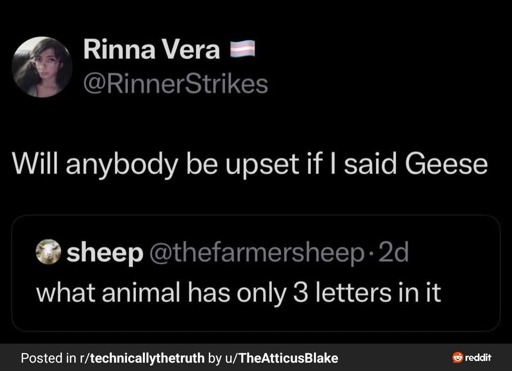 No, I get the reply. It’s the initial tweet (what animal has only three letters in it) that I don’t get the point of.