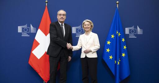 Le président de la Confédération Guy Parmelin et la présidente de la Commission européenne Ursula von der Leyen ont signé lundi à Bruxelles le paquet d'accords entre la Suisse et l'Union européenne, qui doit consolider et renforcer les relations entre les deux parties.
