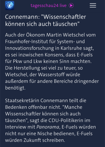 Kannst du lesen und verstehen? Mein Problem ist nicht, ob die Tagesschau ein paar Fakten richtig stellt. Mein Problem ist, dass man Politiker*innen in Interviews reden lässt und nicht nachhakt und nicht infrage stellt, worauf diese ihre Meinung begründen, sondern dass das Gesülze, das aus ihren Mündern kommt, als gleichwertig neben wissenschaftliche Expertise gestellt wird. Da müsste stehen: “Auf Nachfrage konnte Frau Connemann nicht erklären, auf welchen wissenschaftlichen Forschungsergebnissen ihre Aussage fußt,” oder etwas in der Richtung.