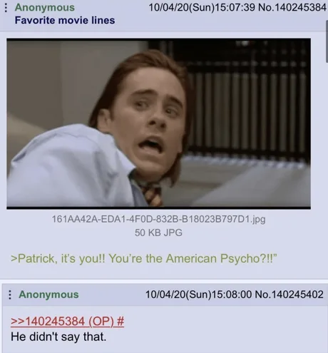 🍹Early to RISA 🧉@sh.itjust.worksM to Greentext@sh.itjust.works · 20 days agoAnon quotes a movie linesh.itjust.worksimagemessage-square10linkfedilinkarrow-up1268arrow-down14