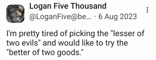 minus-squaregurty@lemmy.worldlinkfedilinkEnglisharrow-up1·6 days agoImagine countless choices depending on the topic at hand, so that we didn’t have stale boomers making decisions regarding the internet or young people’s futures!