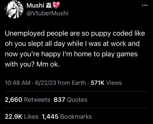 minus-squarehperrin@lemmy.calinkfedilinkEnglisharrow-up18·10 days agoI mean, if you gave a puppy a job, it would probably want some alone time and a beer at the end of the day too.
