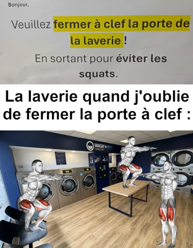 Le muscle de mes jambes en sortant de la laverie avant de refermer la porte: CONTRACTIONNNN