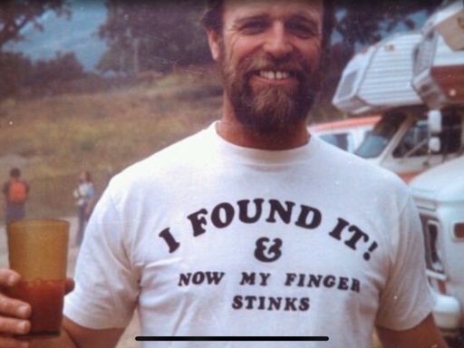 It’s also very heavy handed satire. Around 1975-76, Christian college kids wore yellow buttons that said “I FOUND IT.” The idea was that people would ask what they found, and that would be an opening for them to preach.