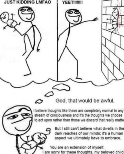 Loooool that’s a dad, passing, intrusive thought alright. I’m not even one but I can picture it. Yeah, we decide! Free will and all of that.
