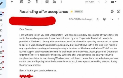 They didn’t even attempt to negotiate. They rescinded their acceptance as soon as “IT specialist” told them they only officially support Windows.