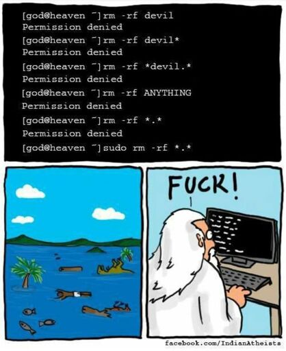 There’s an ancient UNIX copypasta that’s basically the plot of this comic, but it’s troublingly hard to find the original online.