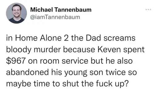 Look at the way those bags are sitting. They aren’t weighed down at all. I can see TP in the one, my guess is the other is just full of styrofoam or something, but they seem to skip over the “Kevin gets ripped off by the grocer” arc of the story entirely. Probably didn’t have enough time for the “booby-trap the grocery store” revenge arc, or were maybe saving that for another sequel.