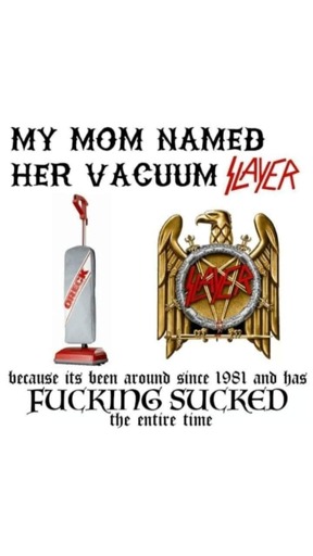 I love slayer and I named your mom “the vacuum” cause she likes anal a lot.