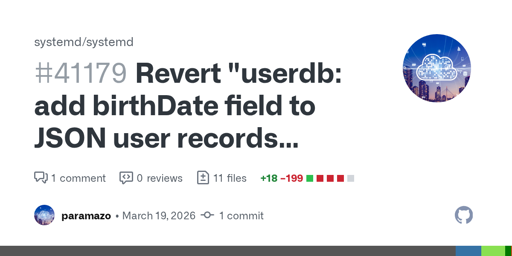 arrow-up1-22arrow-down1external-linkSystemd reverted userdb and birthdategithub.comcm0002@literature.cafe to Linux@programming.dev · 20 hours agomessage-square8linkfedilink