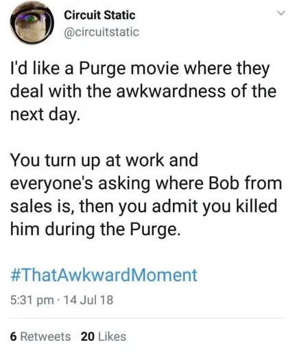 arrow-up1366arrow-down1imagePurge Expanded Universelemmy.dbzer0.comDazharion@lemmy.dbzer0.com to People Twitter@sh.itjust.works · 6 days agomessage-square28linkfedilink