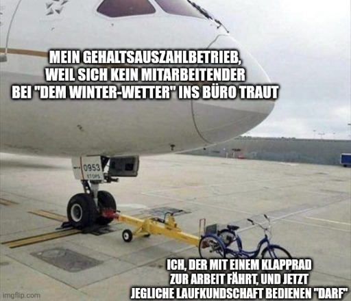 Nur ums nochmal ausgeprochen zu haben, bei wirklich Eis und Glätte ist zuhausebleiben ja voll in Ordnung, wenns die Arbeit zulässt.